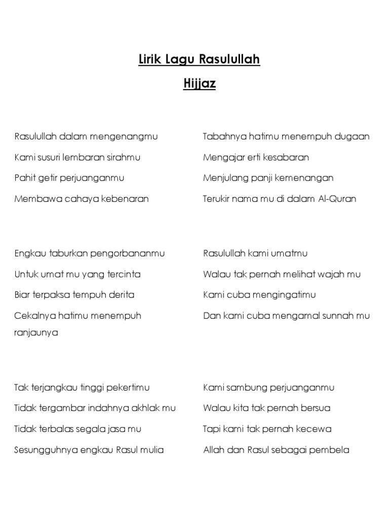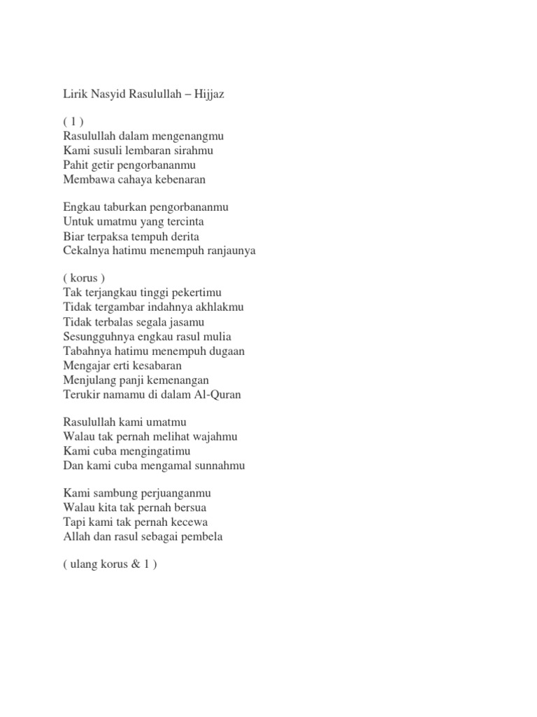 Lirik Nasyid Rasulullah Hijjaz Youtube
