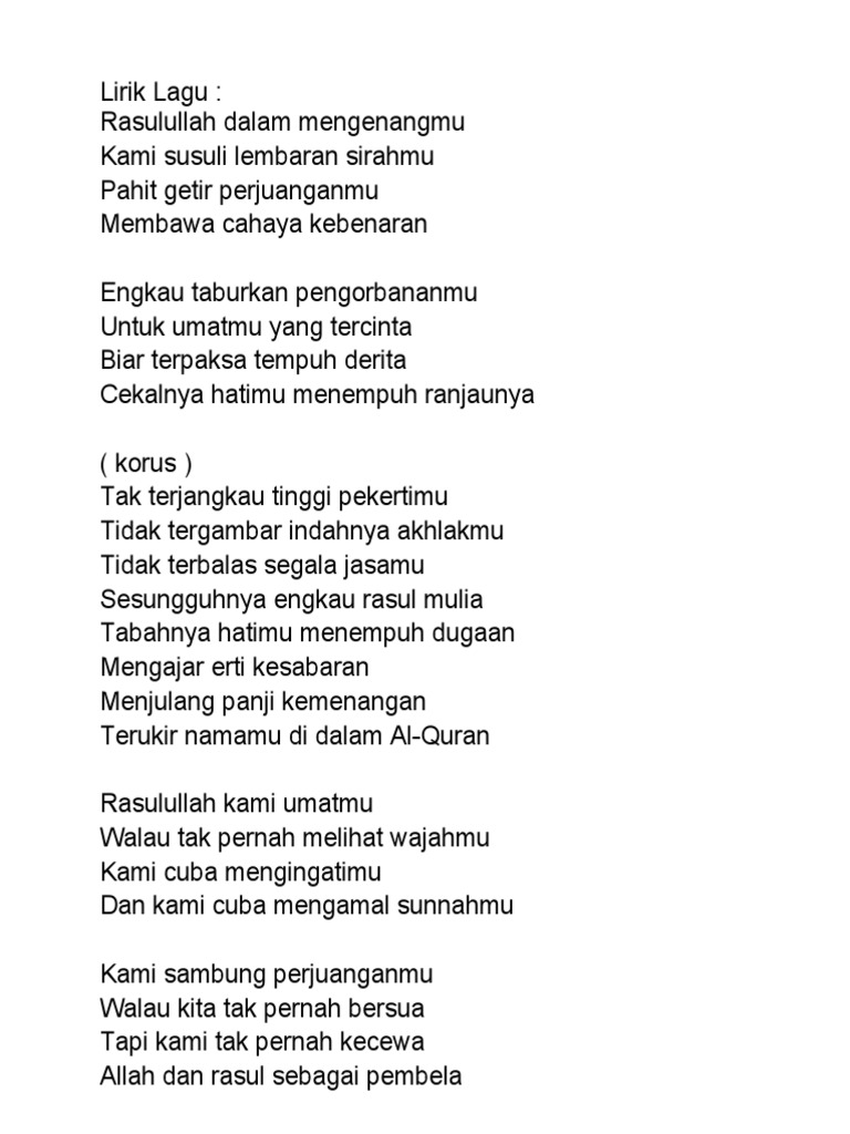 Entah sudah berapa kurun bibirku tidak menyebutnya. Rasulullah dalam mengenangmu kami susuri limpahan sirahmu dan kami sanjung pengorbananmu. 01092004 ambil lirik 35112 klik.